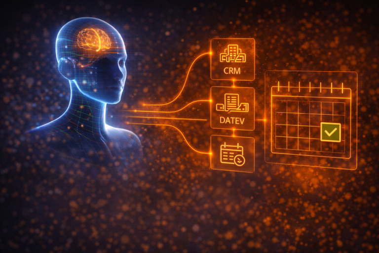Alle Daten fließen in Echtzeit in Ihr CRM oder DATEV. Termine landen fix und fertig in Ihrem Kalender – Sie starten nie mehr bei null.